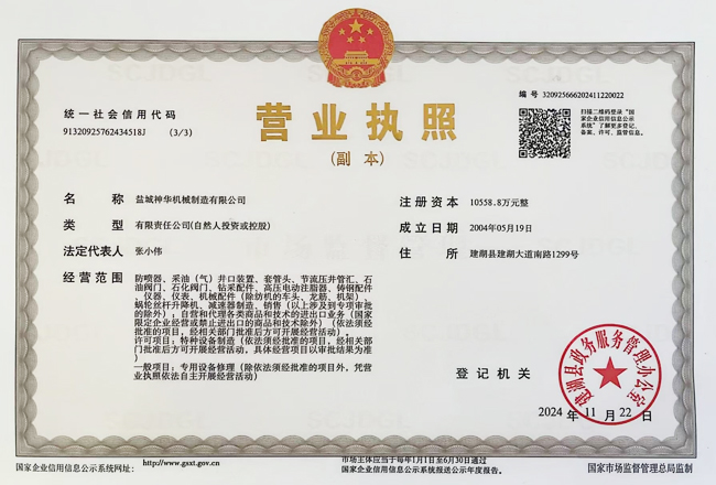 鹽城神華機(jī)械制造有限公司為中國(guó)石油、石化、海洋物資裝備(集團(tuán))總公司的網(wǎng)絡(luò)成員單位,公司注冊(cè)資金10558.8萬(wàn)元整,公司通過(guò)了ISO9001國(guó)際質(zhì)量體系認(rèn)證,取得了中國(guó)船級(jí)社船舶產(chǎn)品和配件使用證書(shū)。